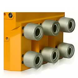 Пружинные контакты ЕХ-КС выполнены на основе оригинальных упругих токопроводных элементов, изготовленных из уникальных сплавов. Особенностью контактной системы является использование пружины специальной конфигурации с внутренней установкой в медный стакан. Такая конфигурация позволяет существенно увеличить количество контактных точек и обеспечить защищенность контакта от внешних ударов. В данной конфигурации одна пружина обеспечивает номинальный ток 1 000 А и стойкость к току короткого замыкания 10 кА. Если требуется обеспечить номинальный ток контакта 2 кА, устанавливаются две пружины, при этом стойкость к току короткого замыкания увеличивается до 20 кА.